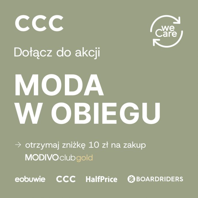 Podaruj nową szansę rzeczom, których już nie nosisz! Przynieś do sklepów CCC czyste i niezniszczone buty, ubrania lub akcesoria, a w zamian otrzymasz zniżkę 10 zł na zakup usługi MODIVOclub GOLD. To prosty gest, który ma realne znaczenie – wspiera ideę odpowiedzialnej mody. Razem sprawmy, by dobre rzeczy były w obiegu jak najdłużej.